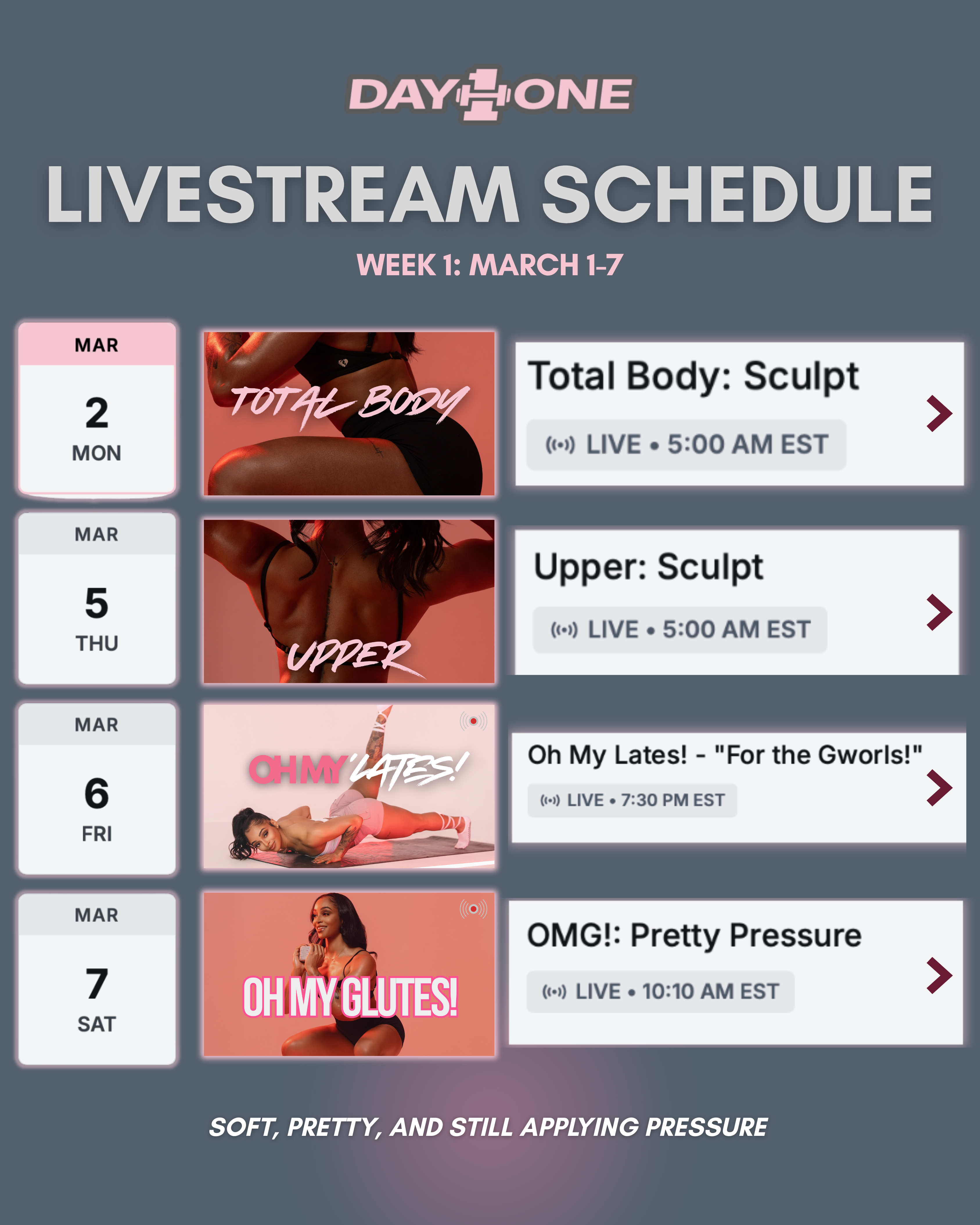 Tap in, stay locked, and let’s keep this Pretty Pressure energy going. This is how we show up. This is how we change. DayONE mentality WINS!